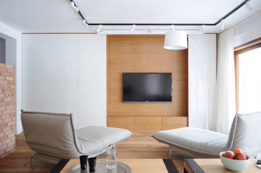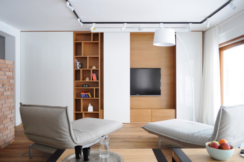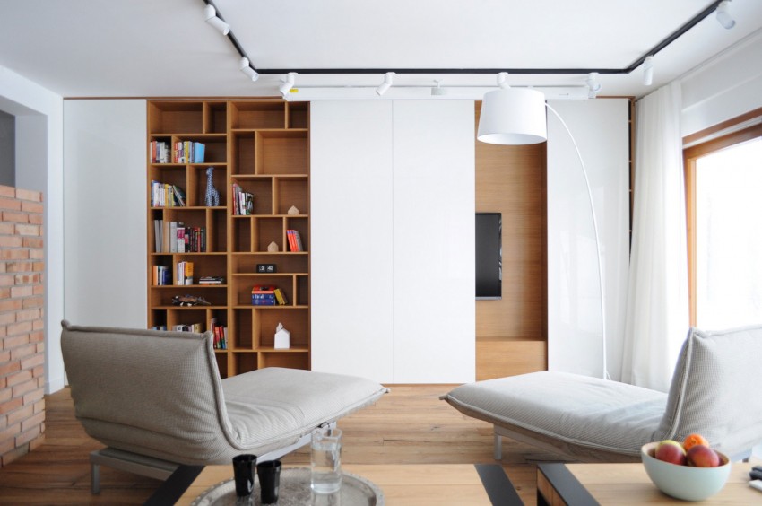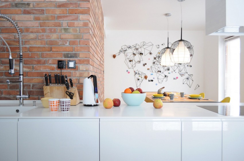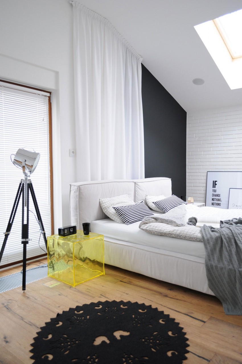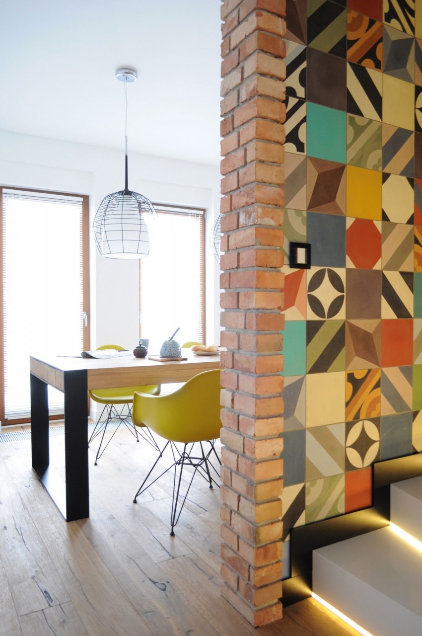 Ova moderno uređena kuća nalazi se u gradu Myslowice u Poljskoj. Za uređenje interijera zaslužna je tvrtka Widawscy Studio Architektury. Kuća je u vlasništvu mladog bračnog para sklonog čestim putovanjima što se može primjetiti na zidu u blagovaoni, gdje su arhitekti smjestili neobičnu kartu svijeta izrađenu iz tankih metalnih šipki na koju vlasnici postavljaju slike i uspomene sa putovanja. U kući prevladava bijela boja koju ispresjecaju detalji jarkih boja poput šarenih keramičkih pločica, staklene pregrade između spavaće sobe i kupaonice, stolica u blagovaoni itd.