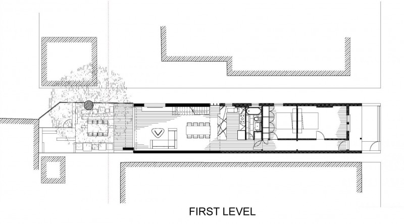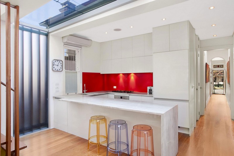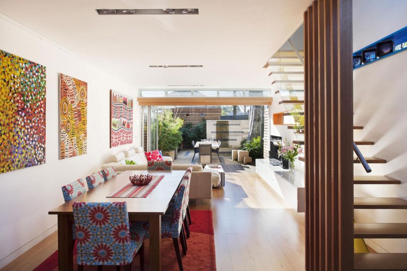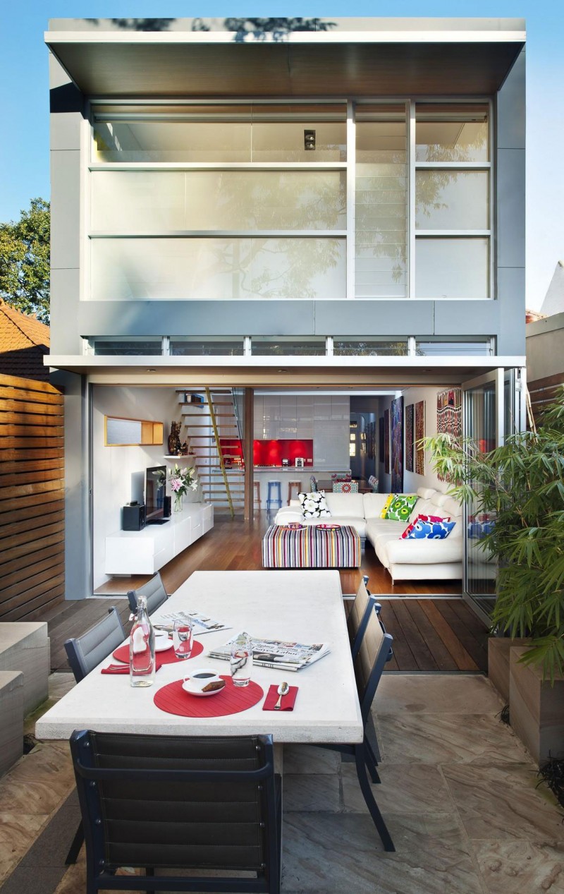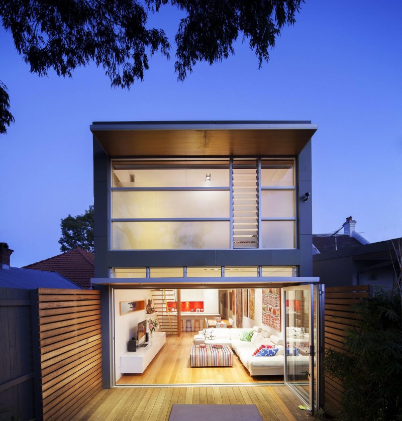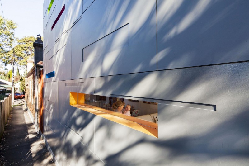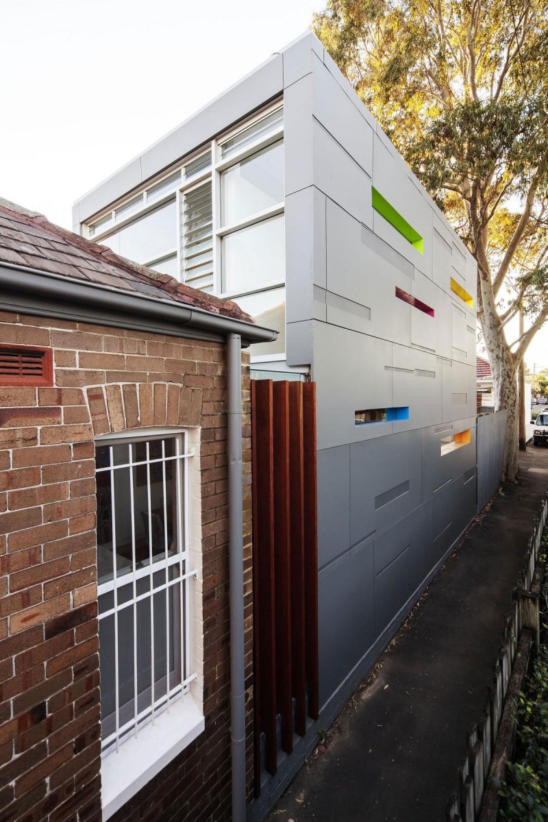 Dovršena 2012 godine, ova kuća smještena u predgrađu Sydneya pravi je primjer mješavine dva potpuno različita stila. Klasična kućica iz predgrađa postala je premalena za rastuću obitelj sa djecom, stoga su je odlučili proširiti novim dijelom kako bi dobili dovoljno prostora za sve aktivnosti. Obzirom na “klasični” izgled cijeloga predgrađa, projekt novoga dijela kuće bio je nekoliko puta odbijen zbog modernog izgleda koji odskače od ostalih kuća. Naposljetku je sve usklađeno i trebalo je još samo uskladiti boju fasade novoga dijela sa sivom bojom kore drveta u dvorištu kuće i saćuvati privatnost okolnih dvorišta. To je rezultiralo uskim bočnim prozorima u stilu same fasade. Parcela na kojoj je kuća vrlo je uska, stoga je interijer uređen da njegovo korištenje bude što jednostavnije. Stubište koje vodi na kat smješteno je na suprotnoj strani od hodnika starog dijela kuće. Time je dobivena bolja iskoristivost prostora. Prijelaz između starog i novog dijela jasno je označen staklenim dijelom na zidu te staklenim krovom koji osim što razdjeljuje kuću donosi svjetlost u njeno središte.