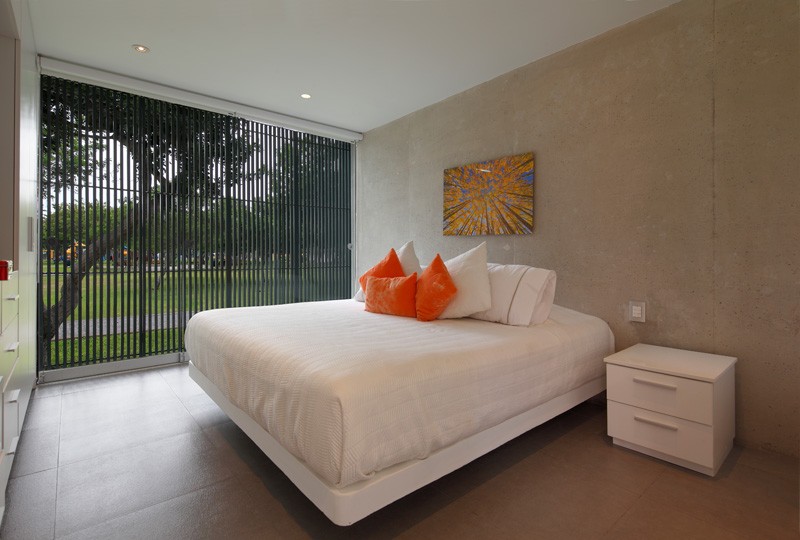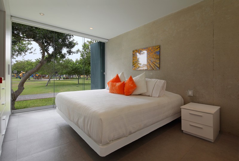 Podrum se sastoji od 3 spavaće sobe sa privatnim kupaonicama te dnevnog boravka. Glavnina društvenog dijela kuće nalazi se u prizemlju koje je sa dvije strane omeđeno staklenim stijenama. Na taj način prizemlje se doima kao da je dio zelenog parka u kojem je kuća smještena.