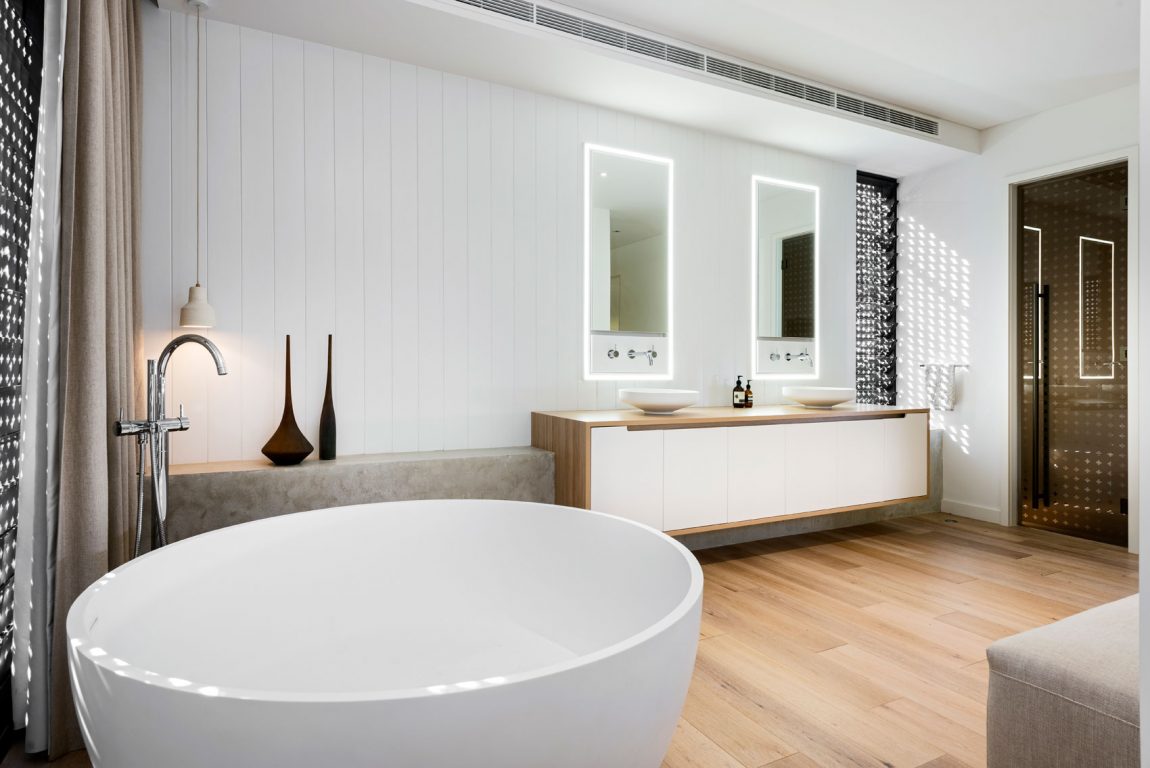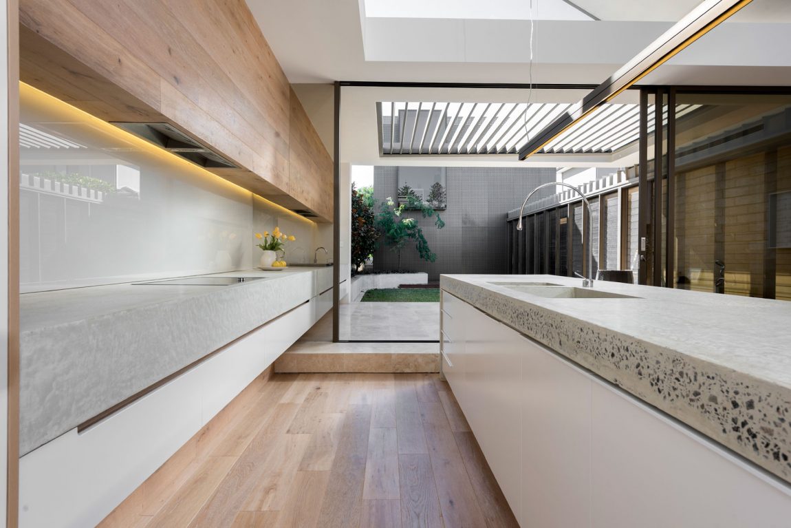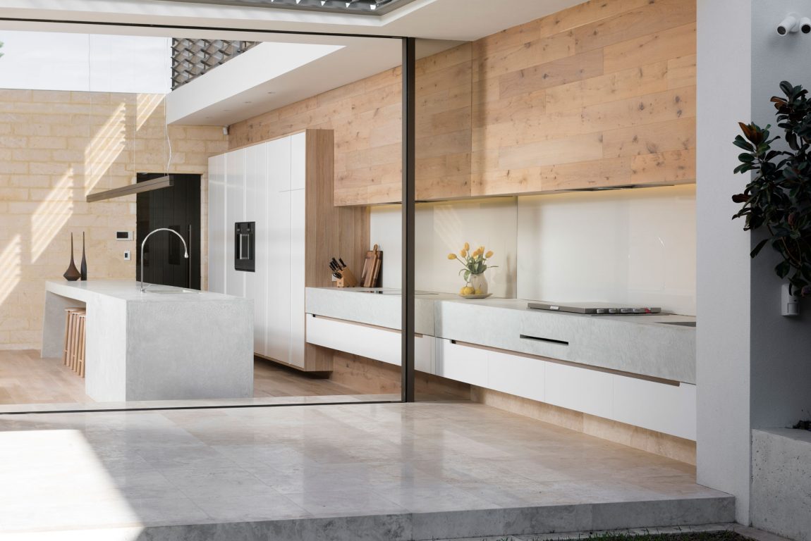 Iako su dva dijela kuće fizički i funkcijski odvojena, interijer je uređen u istom stilu sa istim izborom materijala.