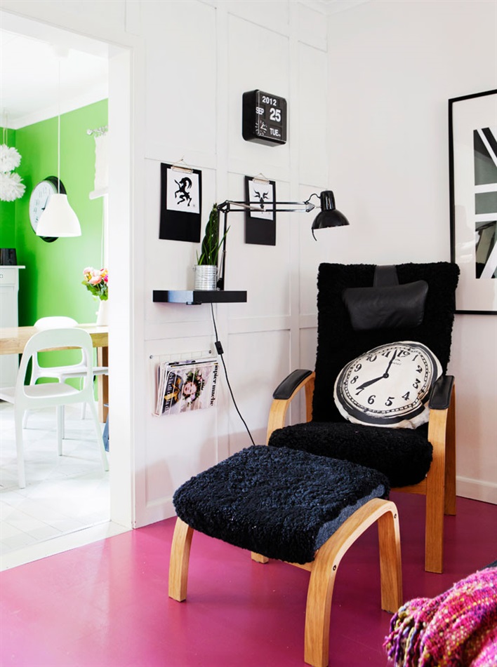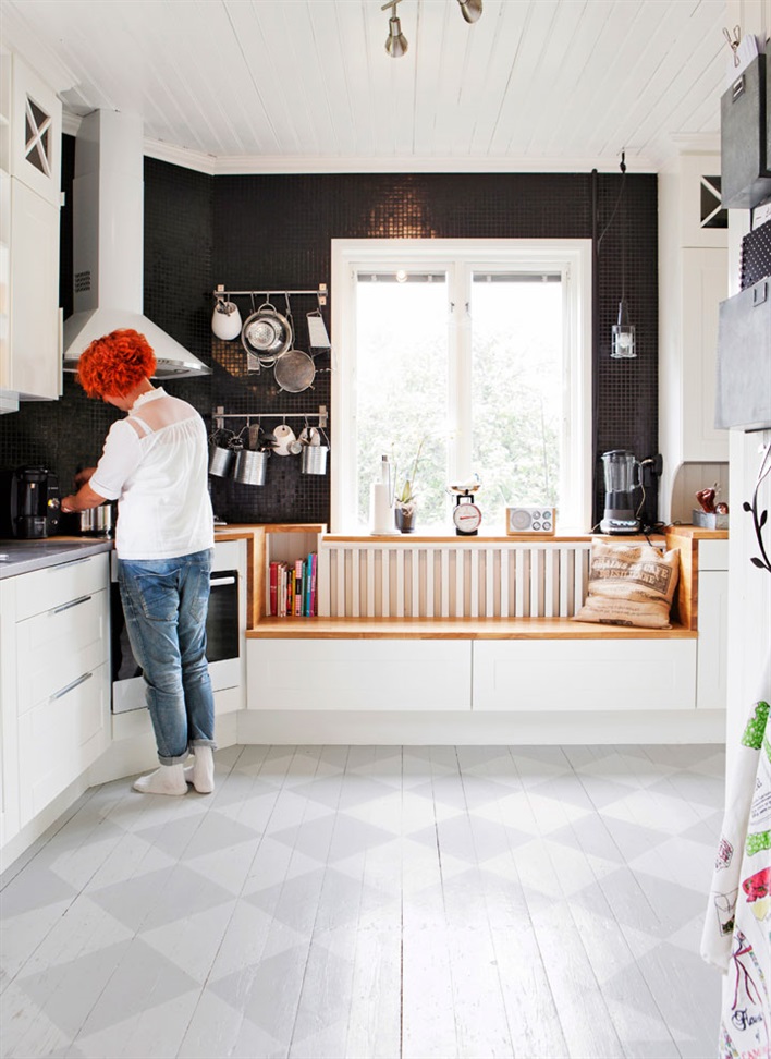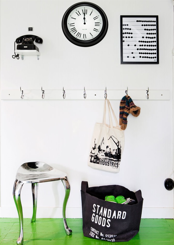 Vanjski izgled ove kuće ne ostavlja neki poseban dojam, klasična kuća okružena zelenilom kakvih ima na tisuće. Ali zato njen interijer ima mnogo toga za pokazati. Zidovi su obojeni zelenom, plavom i bijelom bojom, dok su na zidu kuhinje crne keramičke pločice, a na stubištu i spavaćoj sobi tapete sa cvijetnim uzorcima. Drveni podovi nemaju svoju prirodnu boju već su kao i zidovi u raznim bojama od rozoga poda u dnevnom boravku, preko garderobe i hodnika sa zelenim, do kuhinje sa podom u bijelo-sivoj kvadratnoj kombinaciji. Kuća je puna raznih zanimljivih i korisnih detalja kao što je klupa uz prozor kuhinje. Što je vama zapelo za oko?