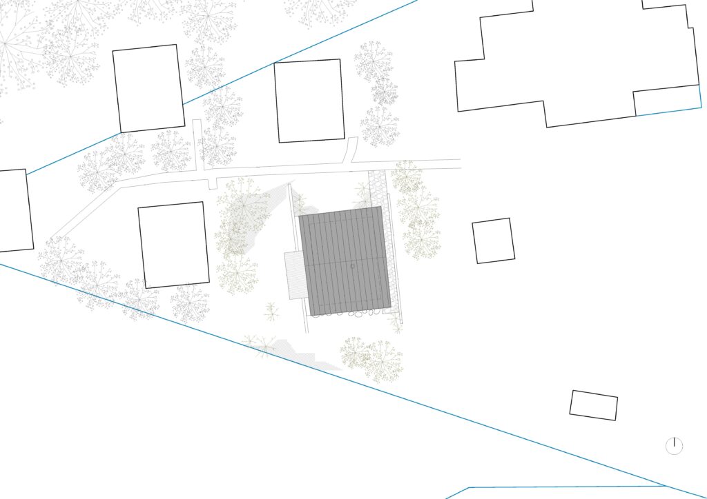 Kuća se nalazi u jugoistočnom dijelu parcele. Ulaz je sa istočne strane i zaštićen od vjetra i kiše.