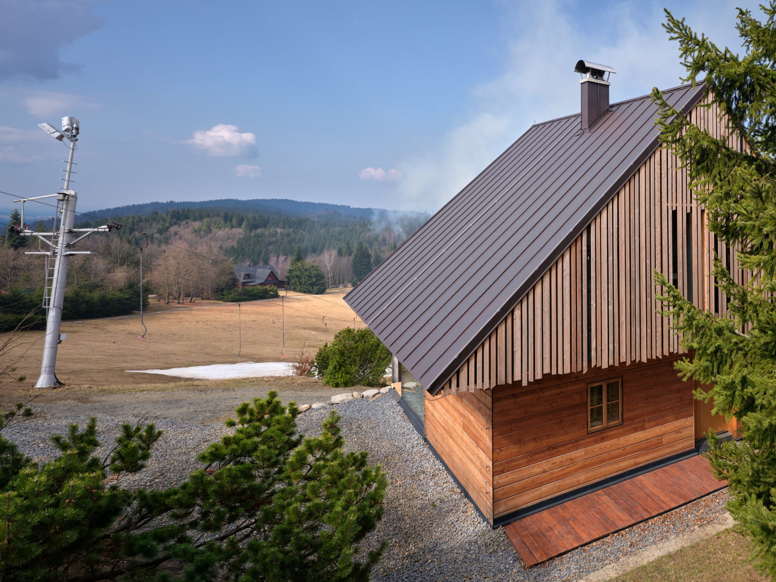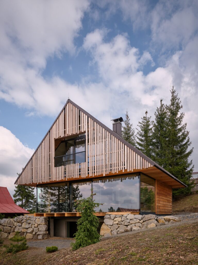 Vikend kuća Kohútka predstavlja suvremeni oblik stanovanja koji se nadovezuje na bogatu povijesnu i materijalnu tradiciju valaškog krajolika. Kuća, smještena na padini s prekrasnim pogledom na planinski lanac Javorníky, kombinira tradicionalnu arhitekturu s modernim pristupom udobnosti i održivosti.