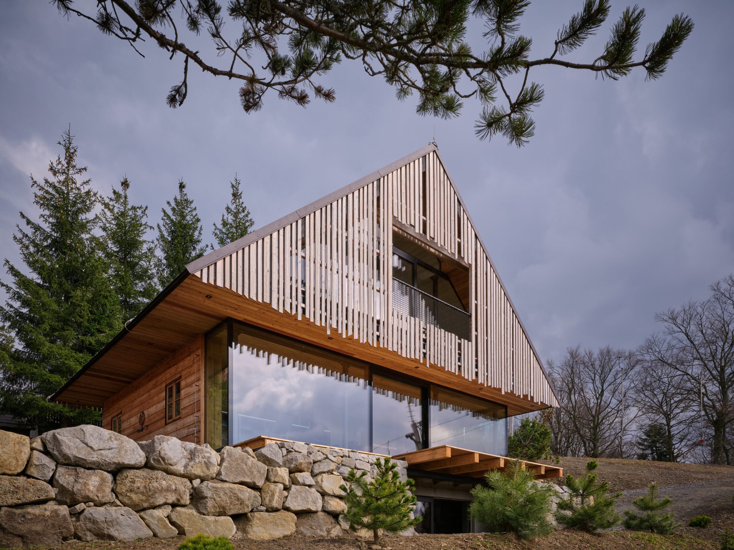 Vikend kuća Kohútka predstavlja suvremeni oblik stanovanja koji se nadovezuje na bogatu povijesnu i materijalnu tradiciju valaškog krajolika. Kuća, smještena na padini s prekrasnim pogledom na planinski lanac Javorníky, kombinira tradicionalnu arhitekturu s modernim pristupom udobnosti i održivosti.