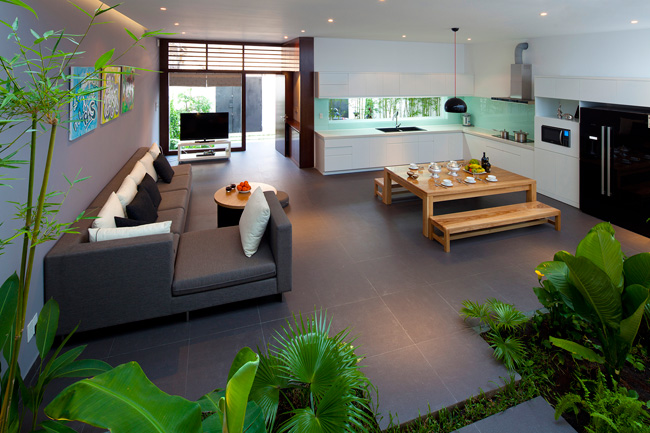Kada govorimo o biljkama u kući ili stanu uglavnom mislimo na cvijeće u teglama. No ponekad je taj segment uređenja interijera podignut na višu razinu u kojoj su prostoru dodijeljene zelene zone kao sastavni dio interijera. Upravo to možete vidjeti u ovom primjeru studia MM Architects u kojem je zbog nedostatka prostora izvan kuće, dio vrta postao dio interijera. Osim što unosi dašak prirode u kuću, zelena zona postavljena je tako da služi kao dio koji odvaja spavaći dio od društvenog dijela kuće. Da bi biljke mogle napradovati u takvom okruženju važno je osim tla i redovite brige osigurati i dovoljan izvor dnevne svjetlosti. Stoga su na krovu iznad zelenih zona napravljene velike staklene površine. U nastavku pogledajte kako izgleda ta zelena oaza.