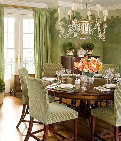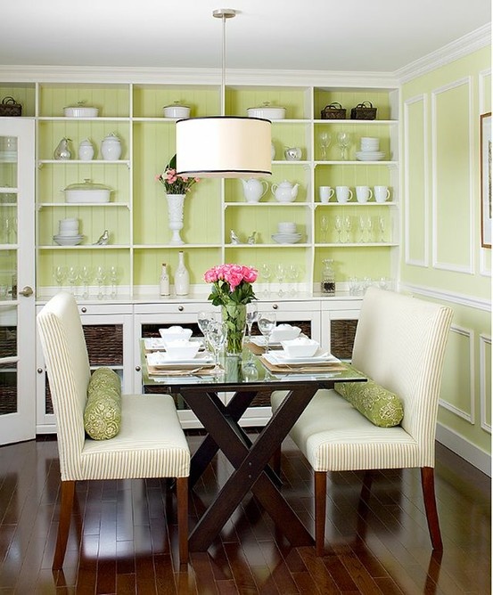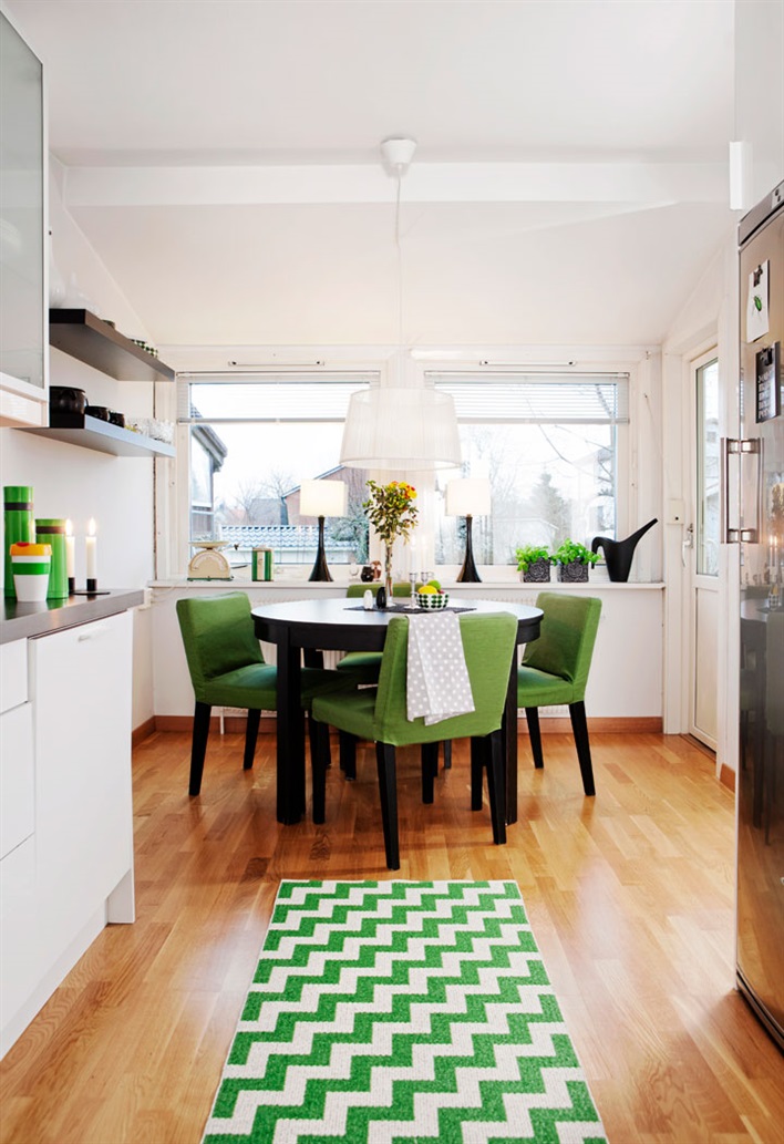 Došlo je vrijeme za preuređenje blagavaonice, ali niste sigurni koju boju odabrati. Da li ste razmišljali o zelenoj? Prema feng shuiu zelena blagavaonica preporuča se ako je smještena na istočnoj ili južnoj strani kuće. Zelena se dobro slaže sa gotovo svim ostalim bojama. Ako je blagavaonica spojena sa kuhinjom ili dnevnim boravkom odlično će se uklopiti uz bijelu, svijetlo sivu ili smeđu boju. U kombinaciji sa smeđom bojom podsjeća na prirodu i stvara ugodnu i opuštajuću atmosferu. U zelenu možete obojiti zidove ili odabrati zeleni namještaj, tepih, dekoracije koje će se uklopiti sa ostalim bojama. Ako se kombinira sa crnom bojom blagavaona će dobiti elegantan i profinjen izgled. Kombinacija sa žutom preporuča se u domovima mlađih obitelji. Jedan od najboljih zelenih detalja svakako su biljke, koje mogu biti samo ukrasni element ili imati i ulogu u pripremi jela ako odaberete začinsko bilje. U nastavku donosimo nekoliko primjera od kojih neki sadrže tek poneki zeleni detalj, pa do onih potpuno zelenih blagavaonica.