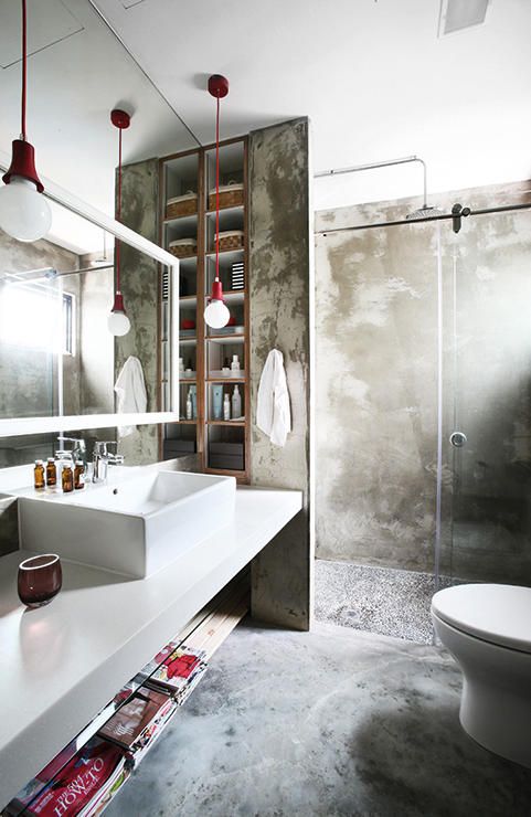 Nakon blagovaonica i spavaćih soba uređenih u industrijskom stilu, na red su stigle kupaonice. Kupaonicu je možda najlakše urediti u ovom stilu. Cijevi i keramičke pločice sastavni su dio svake kupaonice kao i najčešći elementi ovog stila uređenja prostora. Ako želite unjeti malo topline između hladnih bijelih pločica i golih betonskih zidova možete postaviti neki element izrađen od masivnog drva, kao što su police ili ploča umivaonika. Isto tako poneki detalj žarke boje utjecati će na ugođaj u prostoru. No da ne pišemo previše, najbolje je da pogledate ove zanimljive primjere.