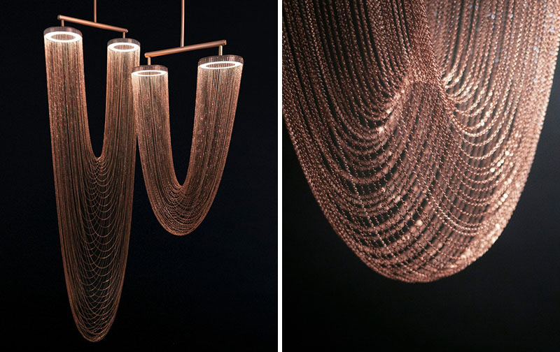Snop bakrenih lanaca spojen je sa dva kružna završetka sa LED rasvjetom i zajedno čine prekrasnu zakrivljenu formu.
