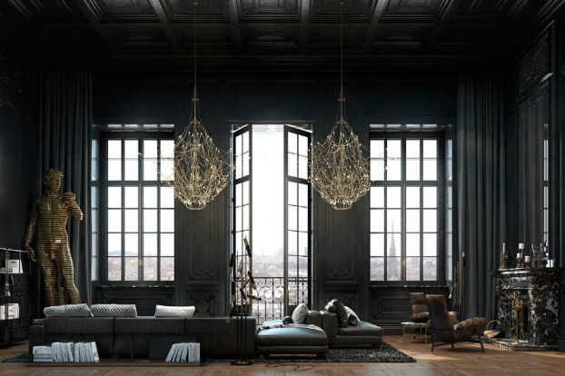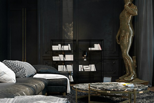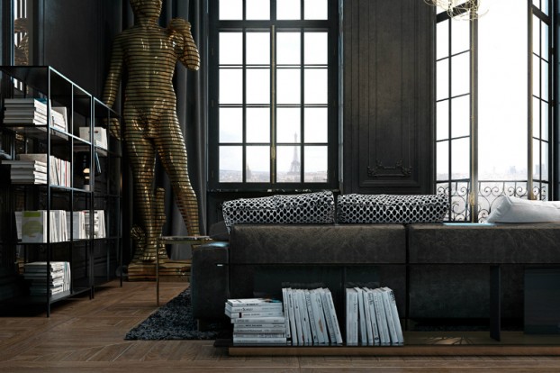 crni-pariski-stan-1Ovaj luksuzni, dvoetažni stan nalazi se u centru Pariza, a uredili su ga ukrajinski dizajneri Irina Dzhemesyuk i Vitaly Yurov. Obzirom da je smješten unutar stare povijesne zgrade, dizajneri su zadržali prepoznatljivi stil i ukomponirali  ga sa modernim i luksuznim uređenjem. Polazišna točka uređenja bila je crna boja koja je vrlo rijedak odabir u uređenju Pariških stanova. Tamne boje poslužile su kao savršena podloga  za dijelove namještaja izrađene od mesinga i raskošne lustere. Iako vrlo rijetko korištena, crna boja daje stanu posebnu dozu elegancije i profinjenosti.