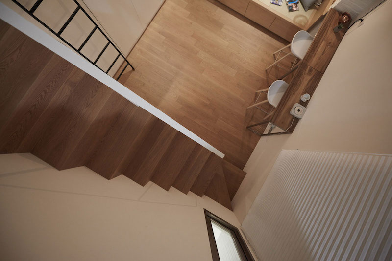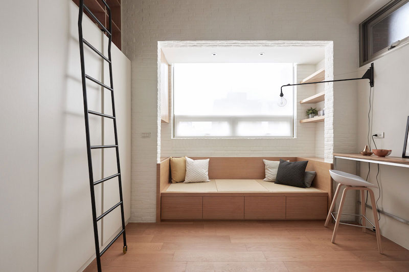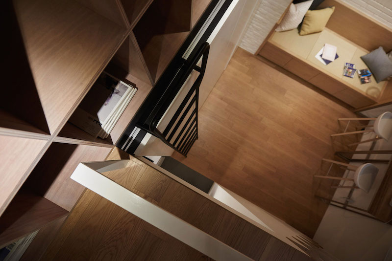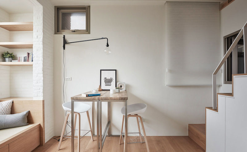Stan se nalazi u gradu Taipei na Tajvanu, a za uređenje se pobrinuo studio A Little Design. Kako bi maksimalno iskoristili prostor visine 3.3 m dizajneri su odlučili podignuti spavaći dio dodavanjem međukata iznad kuhinje i kupaonice.