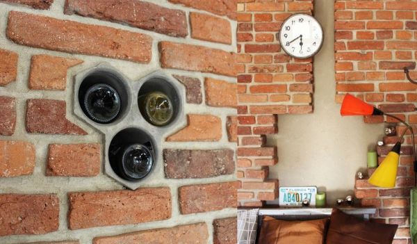 Stan je otvorenog tipa i sastoji se od kuhinje, dnevnog boravka, spavaćeg prostora, radnog prostora i prostora za čitanje, te kupaonice. Kod preuređenja stana, u zidovima od klasične opeke, vlasnici su primjetili okrugle rupe koje su odlučili zadržati i iskoristiti za spremanje vinskih butelja.