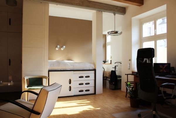 Kada dizajner i arhitektica odluče kupiti stan koji će pretvoriti u svoj dom, sigurno nećete pogodtiti kako će taj prostor izgledati nakon uređenja. Tako je bilo i u ovom primjeru, dizajner Jaroslav Kaspari arhitektica Lucie Faturikova kupili su stan od 50 m², te ga uredili prema vlastitim potrebama sa brojnim originalnim detaljima. Kada su ga kupili, stan je bio u demoliranom stanju. Odlučili su ostaviti samo drvene podove i zidove od opeke, dok je sve ostalo u potpunosti preuređeno. Na taj način mogli su realizirati brojne kreativne i originalne ideje uređenja interijera kao što je drveni stol postavljen u tegle za cvijeće ili krevet unutar ormara, te brojni drugi originalni detalji u stanu.