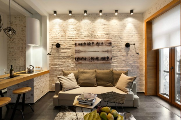 Ukrajinska dizajnerica Elena Fateeva glavni je krivac za uređenje ovog stana od 40 kvadrata, koji se nalazi u staroj jezgri Kijeva. Mali stan je potpuno renoviran, a prije uređenja u stanu su ostali samo goli zidovi. Neki od tih zidova iskorišteni su kao dekorativni detalj u dnevnom boravku i kuhinji. Neke prostorije zamijenile su položaj u odnosu na onaj prije adaptacije, jedna od tih zamjena je spavaća soba i kuhinja. U 40 kvadrata prostora smješteno je: dnevni boravak, blagovaona, kuhinja, spavaća soba, kupaonica i ulazni prostor.