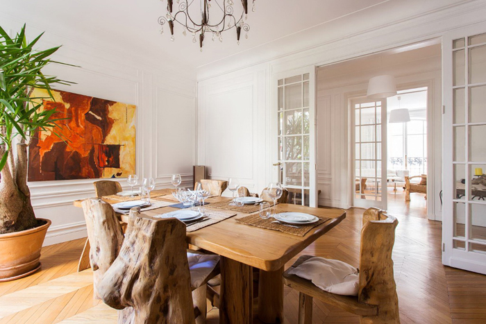Drvo daje poseban ugođaj prostoru i taj ugođaj ne može stvoriti niti jedan drugi materijal. Namještaj od masivnog drva posebno je cijenjen, a pogotovo kada je unikatan. U ovom Pariškom stanu mnogi komadi namještaja izrađeni su na taj način, a gotovo svaka prostorija sadrži poneki primjerak. Kao da je priroda ušetala u stan. Ovaj stan sa unikatnim drvenim namještajem može biti vaše boravište kada dođete u turistički posjet gradu jer služi za iznajmljivanje posjetiteljima Pariza. Ovdje možete saznati više informacija Rue Pétrarque.