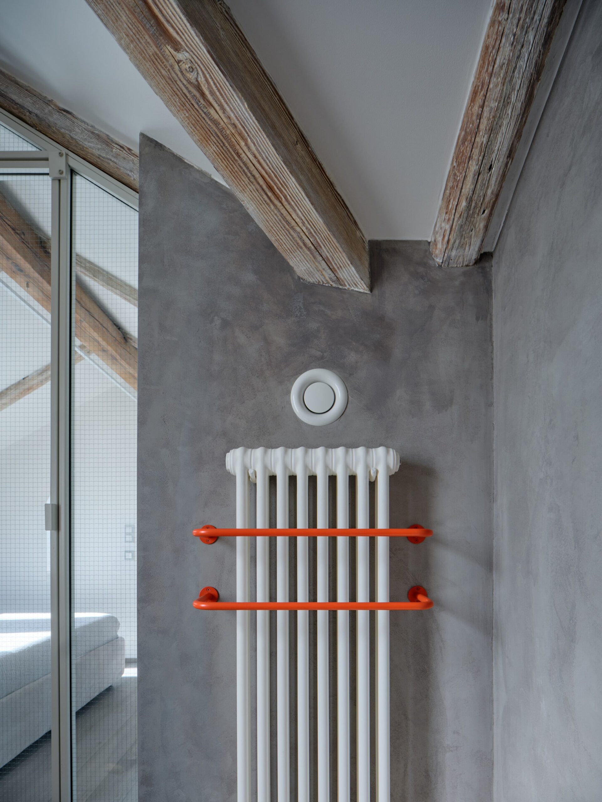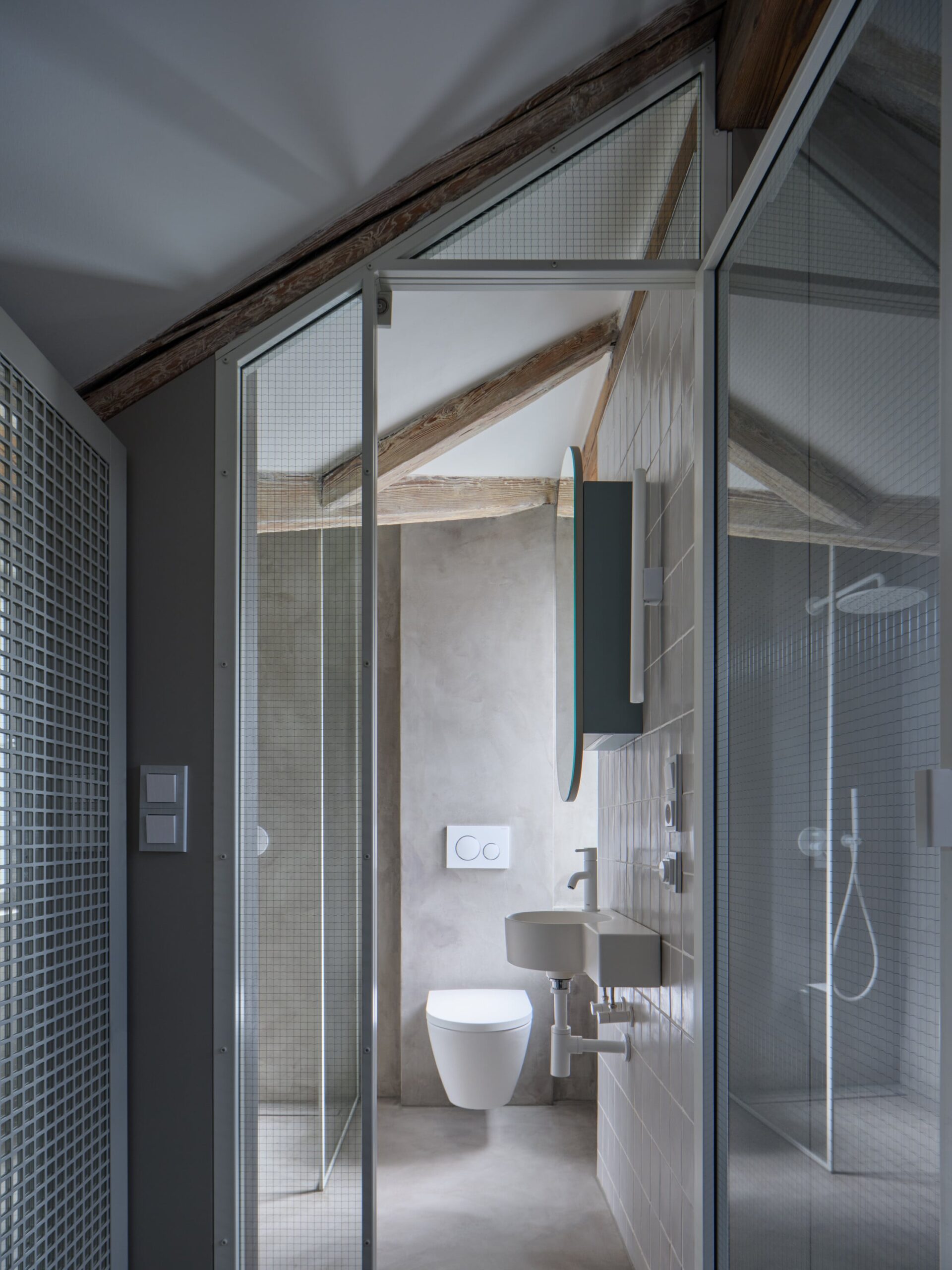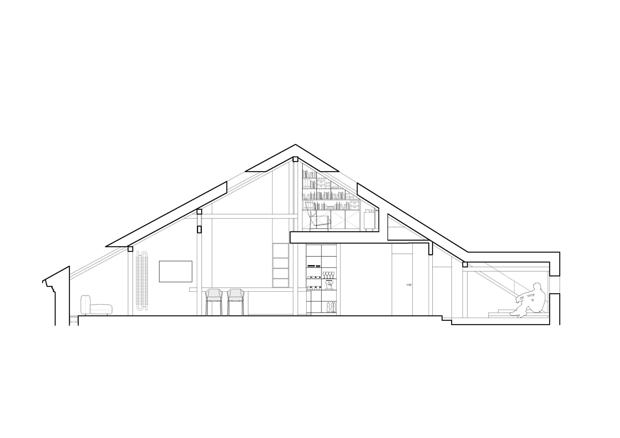Veliki izazov za nas bila je složenost starog tavanskog prostora. Nastojali smo s njim postupiti osjetljivo uključujući unutarnje elemente koje smo dizajnirali i izradili po mjeri, kao što je uobičajeno za nas. Rezultat je harmoničan kontrast između modernih umetnutih elemenata i stare priče koju pričaju grede originalne krovne konstrukcije. Taj dijalog između povijesnog i modernog daje prostoru jedinstveni karakter i stvara privlačan ambijent za njegove stanare.