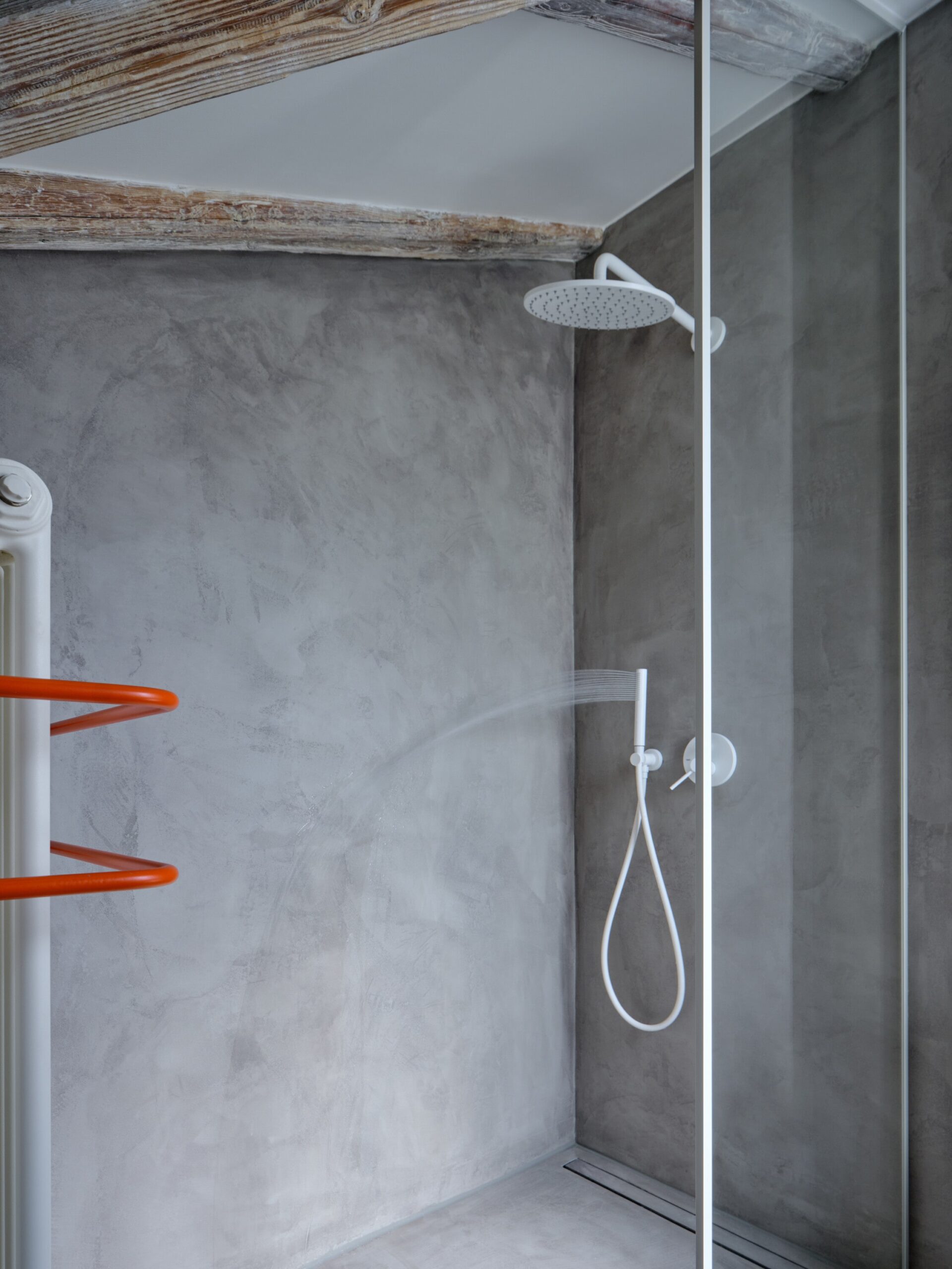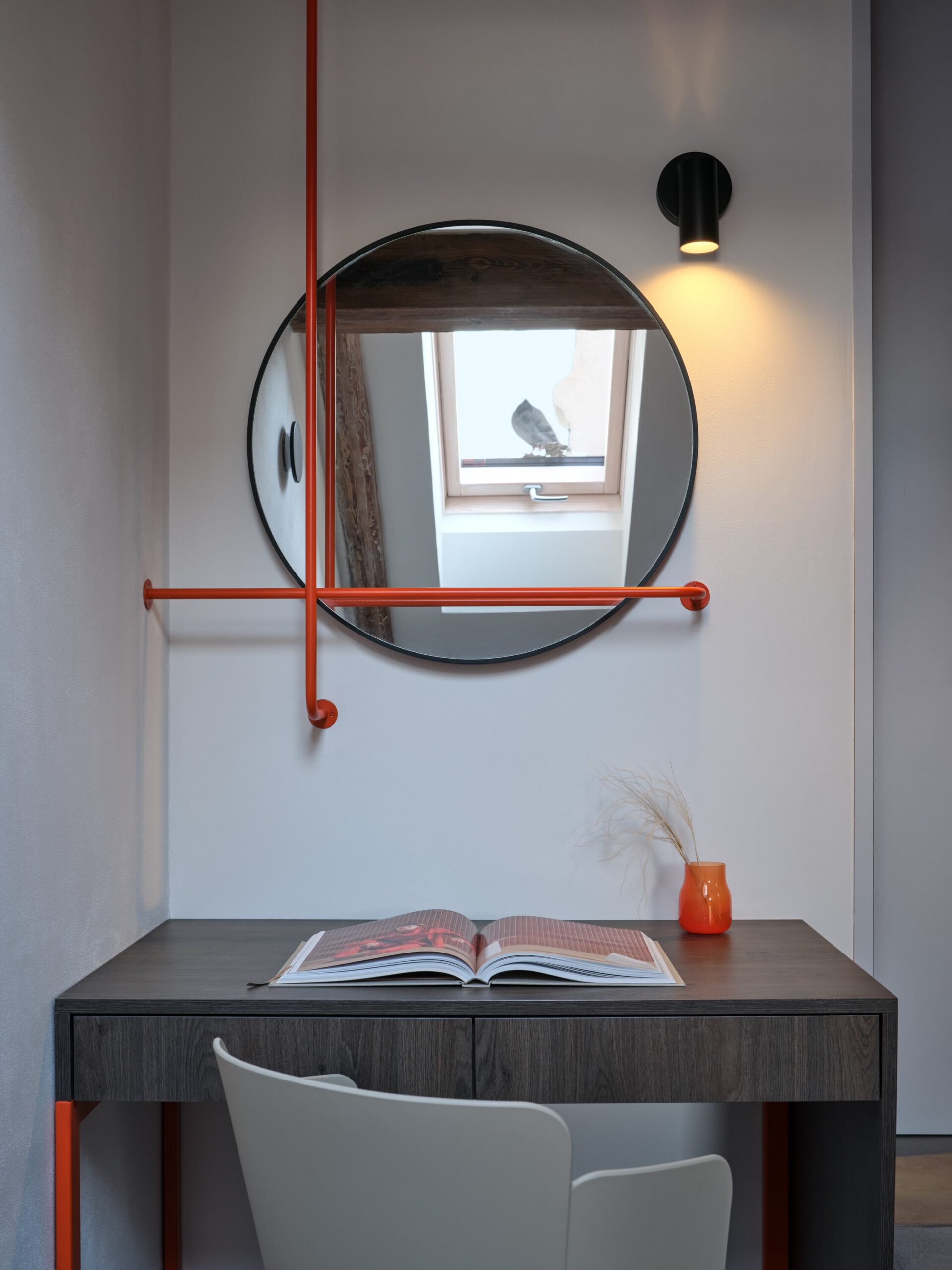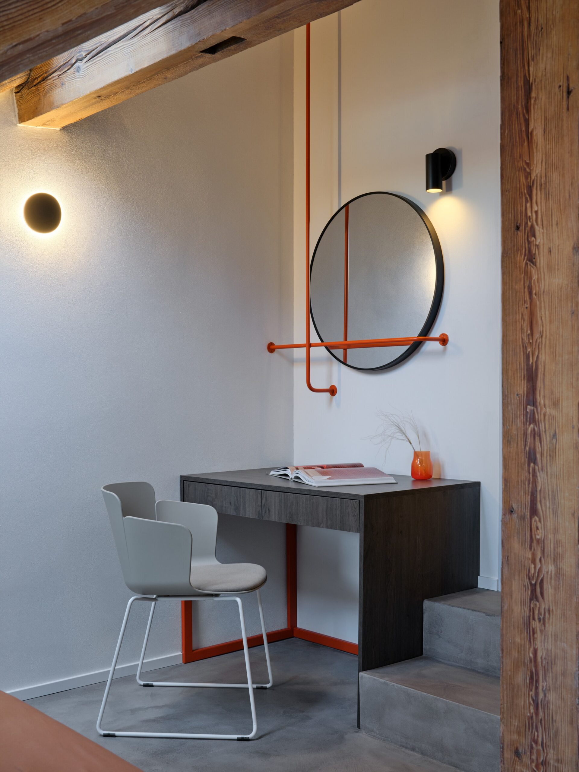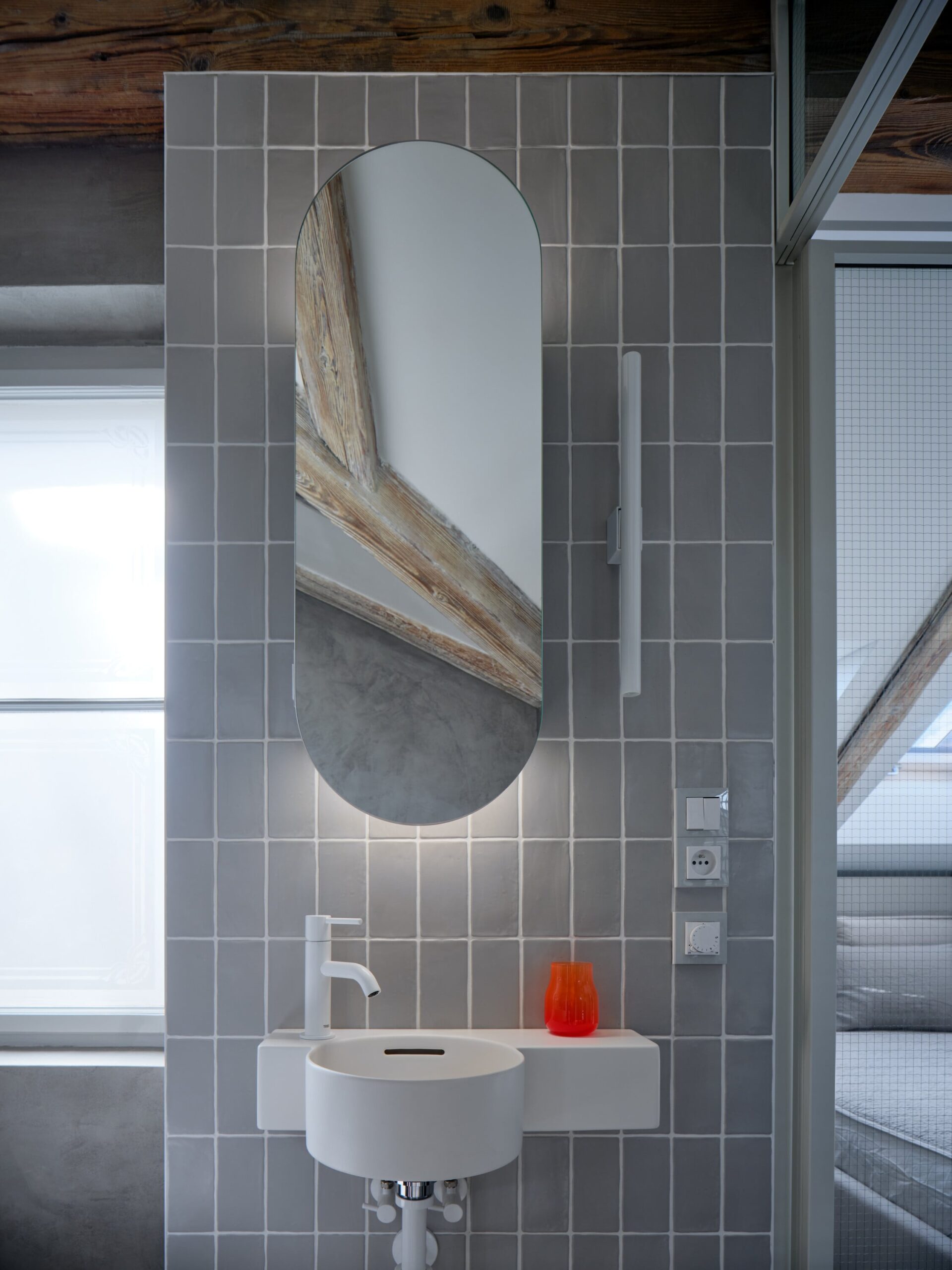 Veliki izazov za nas bila je složenost starog tavanskog prostora. Nastojali smo s njim postupiti osjetljivo uključujući unutarnje elemente koje smo dizajnirali i izradili po mjeri, kao što je uobičajeno za nas. Rezultat je harmoničan kontrast između modernih umetnutih elemenata i stare priče koju pričaju grede originalne krovne konstrukcije. Taj dijalog između povijesnog i modernog daje prostoru jedinstveni karakter i stvara privlačan ambijent za njegove stanare.